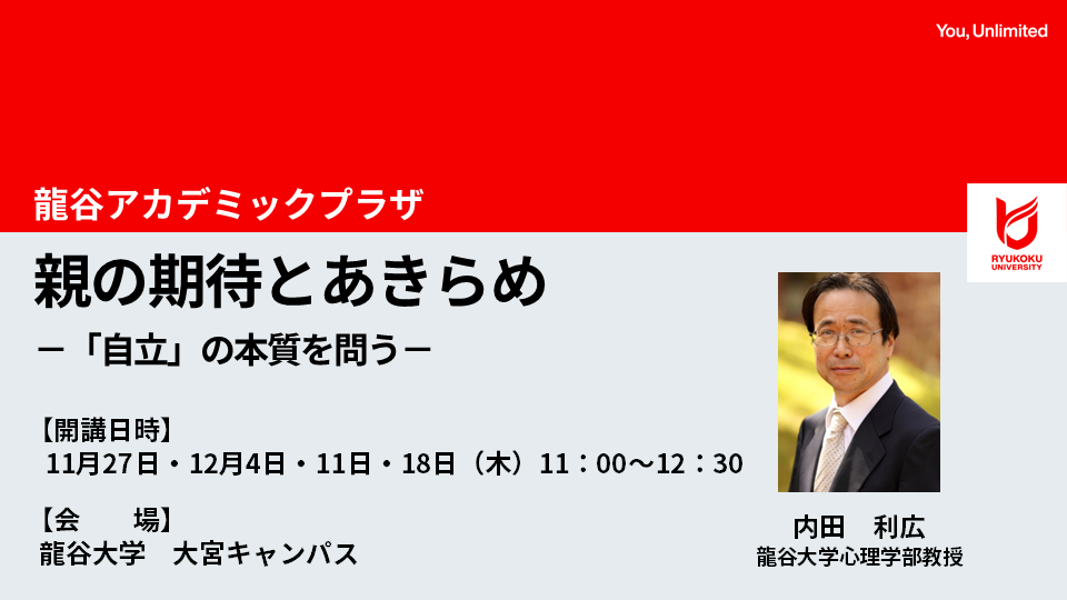 京都府リカレント教育推進機構 【龍谷アカデミックプラザ】親の期待とあきらめ-「自立」の本質を問う-