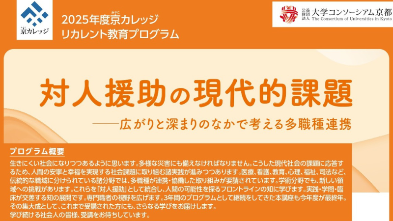 - 京都府リカレント教育推進機構 対人援助の現代的課題-広がりと深まりのなかで考える多職種連携-