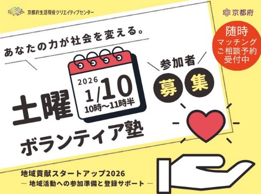 - 京都府生涯現役クリエイティブセンター 「土曜ボランティア塾」を開催します!(1月10日(土))