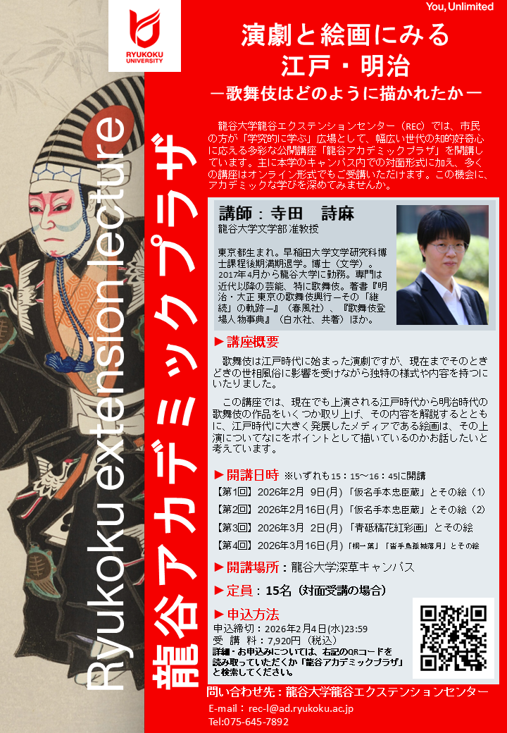 - 京都府リカレント教育推進機構 【龍谷アカデミックプラザ】演劇と絵画にみる江戸・明治-歌舞伎はどのように描かれたか-
