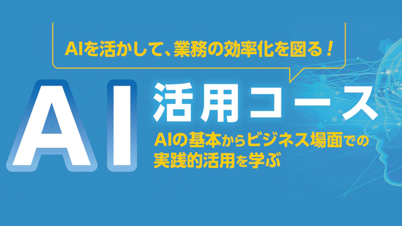 AIの基礎知識から生成AIの活用までを体系的に学び、実務に応用できる力を育成するコースです。